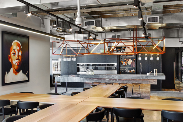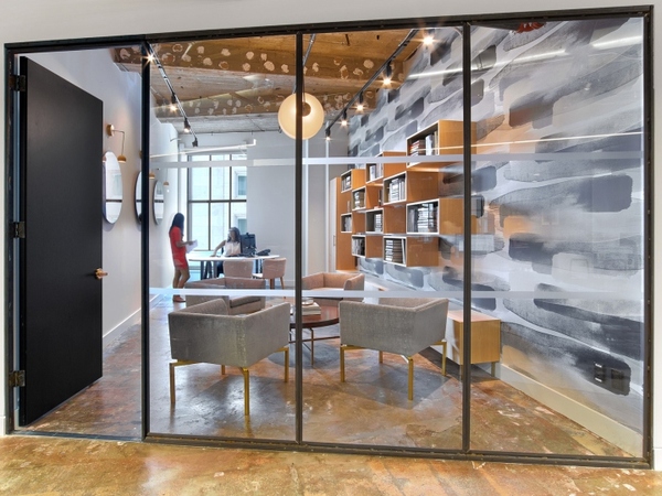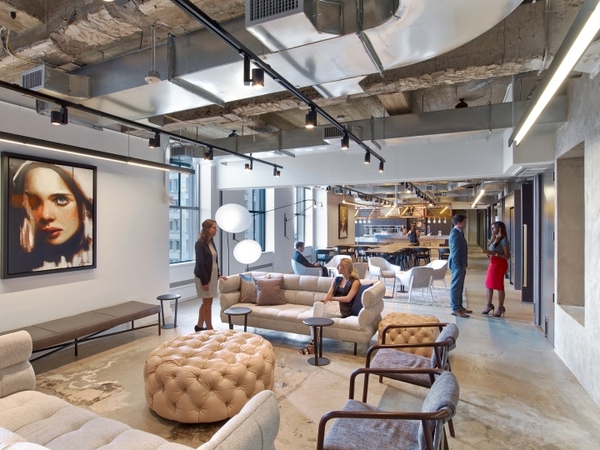 今天,上海辦公室裝修設(shè)計(jì)公司-領(lǐng)企裝飾要與大家分享的是,紐約WMEIMG公司的辦公室裝修設(shè)計(jì)。其設(shè)計(jì)風(fēng)格屬于創(chuàng)意工業(yè)型,水泥色裸磚墻和灰暗色密閉式空間里,在亮黃色LED燈光的映照下,個(gè)性的工業(yè)風(fēng)怎少得了鐵藝和復(fù)古元素的裝飾單品,褪化掉過(guò)度的做舊和昏暗感,顯得神秘而又溫馨。