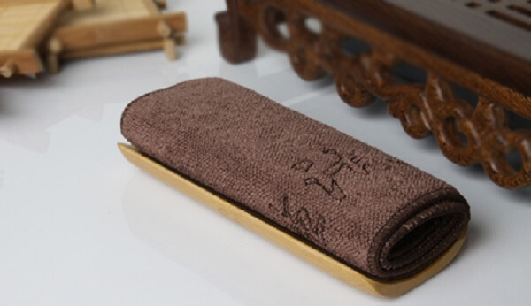 茶巾:用來(lái)擦拭泡茶過(guò)程中茶具上的水漬、茶漬,尤其是茶壺,品杯等的側(cè)部、底部的水漬和茶漬。切記只能擦拭茶具,而且是擦拭茶具飲茶、出茶湯以外的部位,不能用來(lái)清理泡茶桌上的水、污漬,果皮物。