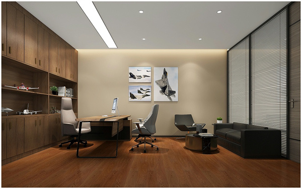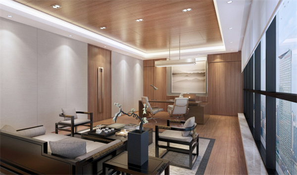 董事長辦公室裝潢設(shè)計采用的新中式風(fēng)格,環(huán)境采用白色和原木色的搭配使用,突出董事長氣質(zhì),沉穩(wěn)的同時又不失時尚。