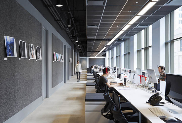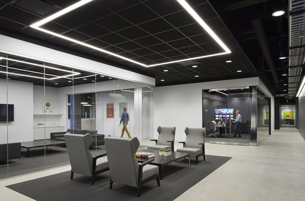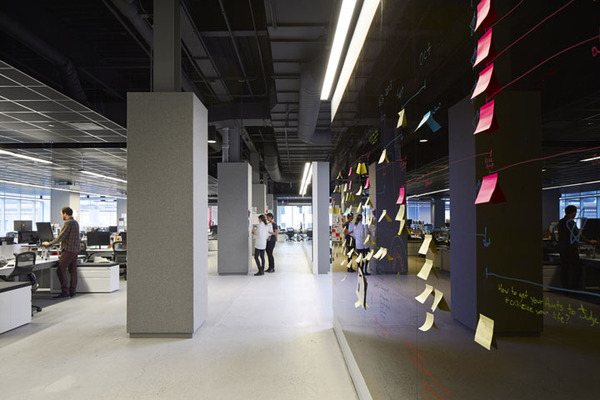 首先,拆除所有沿窗而設(shè)的獨(dú)立辦公室,所有會(huì)議室都裝上透明的落地玻璃。打開(kāi)后的開(kāi)放空間擁有良好的自然光線(xiàn)。開(kāi)放的辦公理念也有利于促進(jìn)團(tuán)隊(duì)合作和臨時(shí)發(fā)起的頭腦風(fēng)暴。