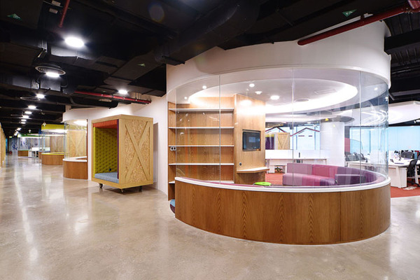 整個布局設計既能讓員工肩并肩工作與交流,同時又能滿足他們相對的獨立需求。員工區(qū)每個部門采用不同的色彩加以區(qū)分,定制設計的地毯也相應隨之變化。