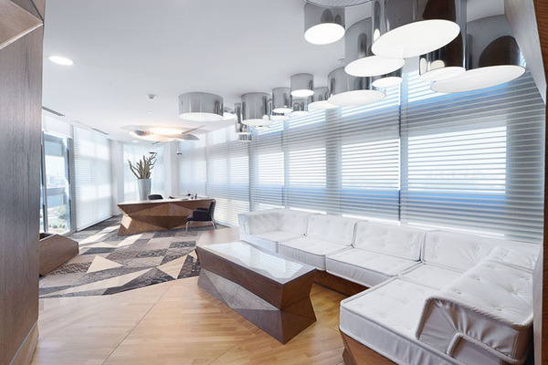 高管辦公區(qū)的空間設計**視覺沖擊力,且精致典雅。以黑色大理石和橡木為主要裝飾材料。簡潔的色調(diào)通過立體幾何造型拼接令空間充滿時尚活力,營造出***企業(yè)總部的尊崇魅力。