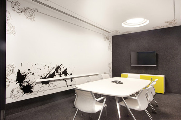 洽談室的設(shè)計,設(shè)計師采用了白色、灰色、黃色、黑色顏色之間的轉(zhuǎn)換,來體現(xiàn)洽談室的價值,人體對顏色很敏感,多種顏色經(jīng)過設(shè)計師的重新搭配,更顯得時尚、創(chuàng)新。