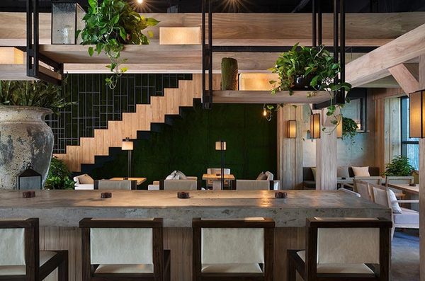 深色木條作為室內(nèi)墻面的主要材料奠定了整個(gè)空間的基調(diào),而整個(gè)中餐廳桌椅和配飾運(yùn)用了不同程度的灰色,營(yíng)造出一種神秘的氛圍,這就是該餐廳裝修設(shè)計(jì)的魅力!