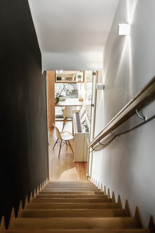 設(shè)計(jì)團(tuán)隊(duì)盡可能充分的利用空間的每一角落,在玻璃落地窗邊,定制出簡易實(shí)用的工作區(qū)域,練琴房也擺放于此,讓陽光、美景、伴隨著每天的工作時(shí)光。