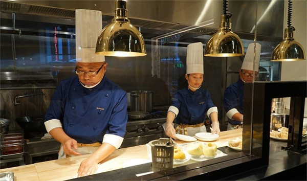 既然餐廳取名“東坡酒樓”,那么就要符合這個(gè)意境的餐廳環(huán)境設(shè)計(jì)。設(shè)計(jì)師CallisonRTKL想象著東坡居士的工作室該有的樣子,以筆,墨,紙和硯四個(gè)元素設(shè)計(jì)的大堂與品牌的**藍(lán)色和香檳交織在一起。