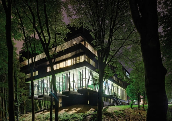 荷蘭的格魯特-克里蒙達爾康復中心,座落于東部的一片森林之中,環(huán)境非常幽靜。在設計上,這家醫(yī)院主要采用古銅色鋁板和玻璃。這一設計背后的想法是,投入大自然的擁抱有利于患者的治療。