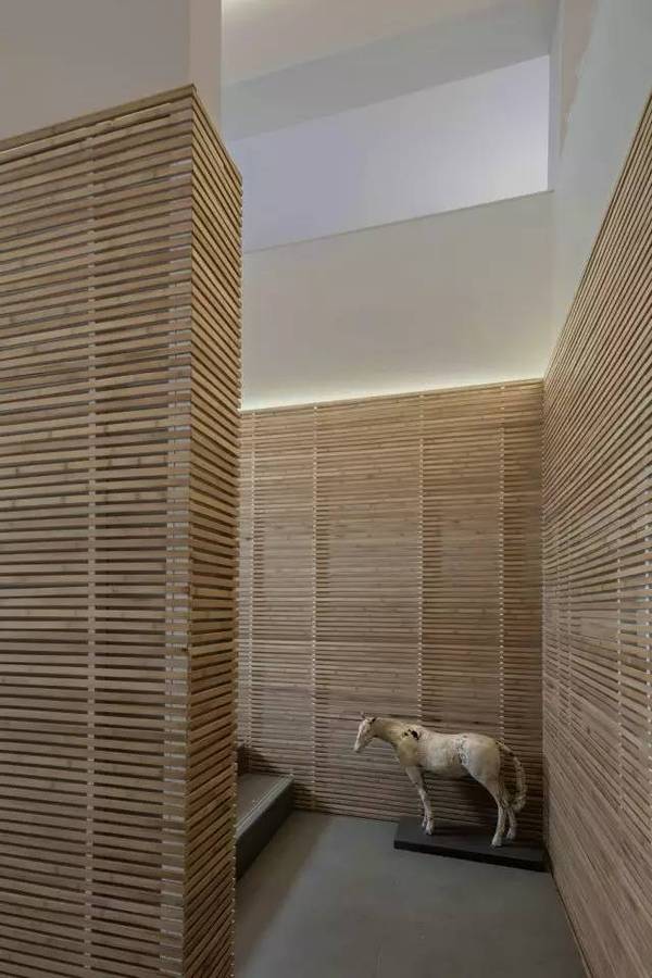 在一個變向的空間,我們更容易產(chǎn)生時間和空間兩個維度的失向。由此得到一個感知上的室外桃園。這樣的設(shè)計不一定見到造型,但當(dāng)你身臨其境**會給你一個安靜舒適的感覺。自然地感覺比模仿自然的情景更重要。