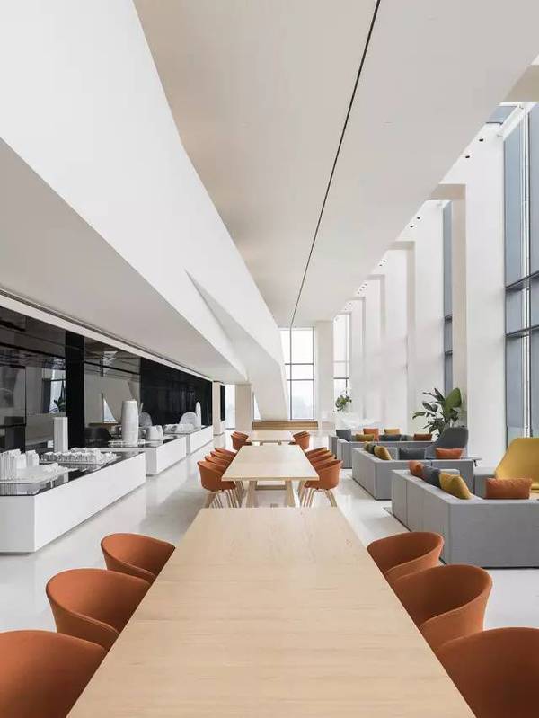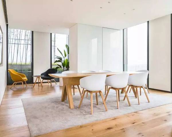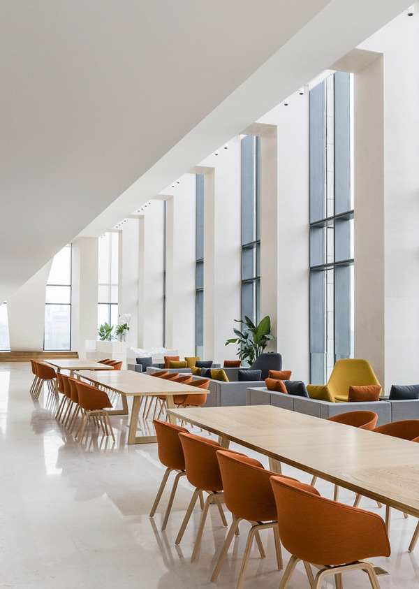 每天,人們都會在辦公室中呆很久,所以設計師希望創(chuàng)造一個舒適而又智慧的場所。設計師為天花上的燈加上了一層反射膜,這樣整個天花都能發(fā)出柔和的漫反射光。這是一個充滿創(chuàng)新而又微妙的設計,連接室內外。諸如用戶自己設計的地毯和藝術品這類的細節(jié),也顯示出外灘SOHO的空間精神,同時也給這個開放大空間以豪華而又親密之感。