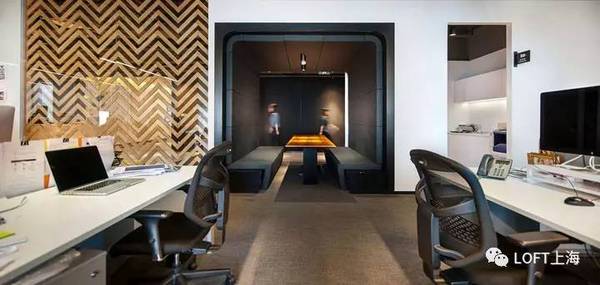 木材表面、日光和綠色墻壁給‘休閑就餐’區(qū)域帶來了大自然的感覺。采用對比色的地板標示出了環(huán)繞在辦公室核心地帶周圍的‘跑道’循環(huán)路線。