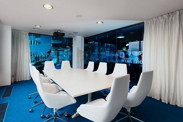 不同用途的辦公室設(shè)計選用的顏色也不同。例如藍(lán)色是一個可以使時間“變快”的顏色,現(xiàn)如今,很多員工都對長時間的會議覺得煩惱,然而開會又是公司必不可少的程序。因此,領(lǐng)企小編建議,辦公室會議室設(shè)計**以藍(lán)色為基調(diào)進(jìn)行室內(nèi)裝潢,藍(lán)色的辦公室空間,會讓人覺得時間過得很快,從而會議結(jié)束的很快的效果。