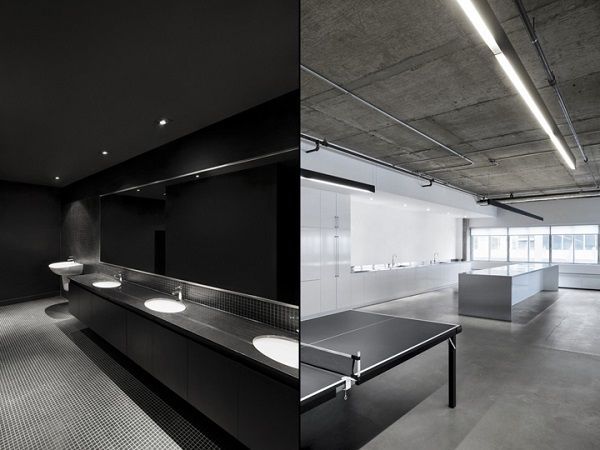 上面這個(gè)就是加拿大**奢侈品品牌SSENSE公司的辦公室裝修設(shè)計(jì)。在這里,灰色和光線整合,使得整個(gè)空間不再單調(diào)。無論是辦公室空間內(nèi)大量的玻璃隔斷還是超大的窗戶都能夠使得光線在這里充分發(fā)揮它的功能。灰色這個(gè)由略帶貶義的顏色卻和象征著積極樂觀形象的陽光在這個(gè)辦公空間不期而遇,整個(gè)空間便在這兩種元素的相互作用下變得柔和起來。