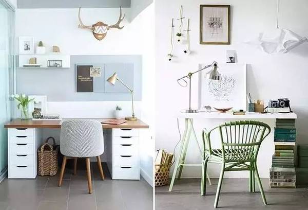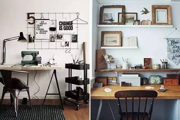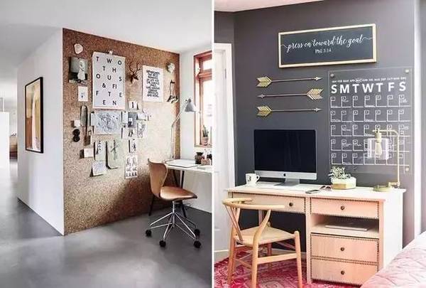 自由職業(yè)或是平時(shí)的工作沒有很強(qiáng)烈的需求的話,那就把它打扮的創(chuàng)意滿滿吧!像軟木墻或是任務(wù)墻這種墻面裝飾**是吸睛的打扮~