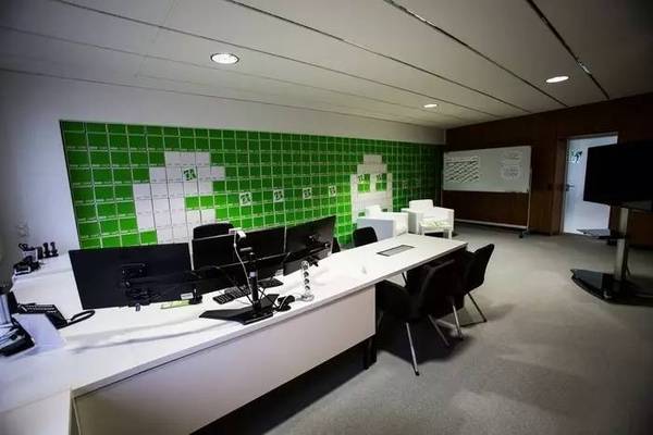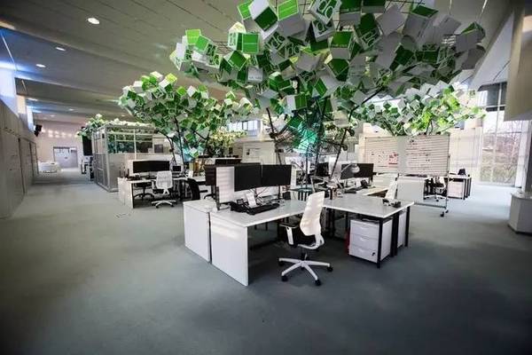 辦公室有36個(gè)工作場(chǎng)所、大量的會(huì)議室以及一間可以容納30人的培訓(xùn)室和很多的服務(wù)于團(tuán)隊(duì)工作的空間。在辦公室設(shè)計(jì)中,色彩是采用的經(jīng)典的黑白搭配,但是這其中*引人注意的是公共辦公區(qū)域的類似大樹(shù)的設(shè)計(jì)?!按髽?shù)”的主干是由簡(jiǎn)單的鐵架組成,樹(shù)冠是有一些印有公司logo的正方體構(gòu)成。從遠(yuǎn)處看就像是生長(zhǎng)茂密的大樹(shù)一般,十分形象。