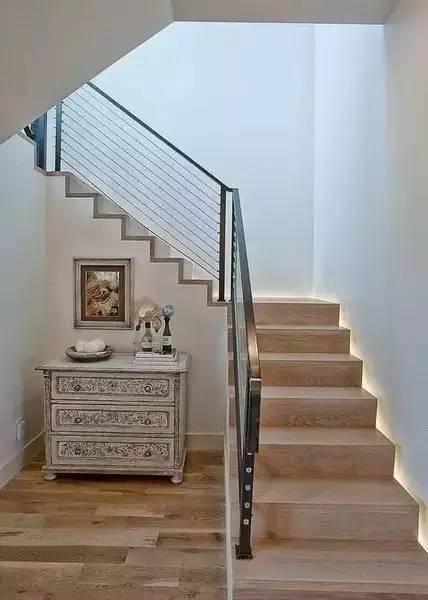一個樓梯扶手下的燈帶