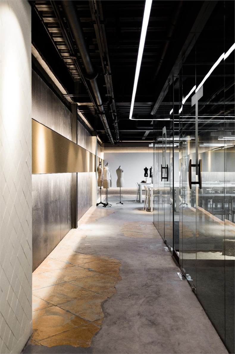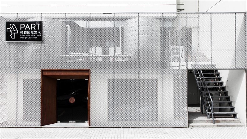 PART STUDIO是一家藝術(shù)留學(xué)教育機(jī)構(gòu),場(chǎng)地形態(tài)為25*10M長(zhǎng)方形,入口處室外屋頂為建筑機(jī)電設(shè)備平臺(tái)。室內(nèi)空間需求多樣:一間30人左右的教學(xué)空間(同時(shí)可轉(zhuǎn)換成50人左右的講座及展覽空間)、4間獨(dú)立小教室、公共辦公室、接待室、VIP休息室、衛(wèi)生間、儲(chǔ)藏室等
