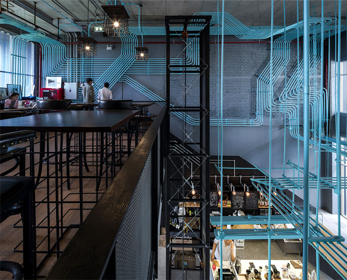 整個(gè) Co-Working Space 面積寬敞,以工業(yè)廠房的形式接待著來訪的客人,稍經(jīng)修飾的地面與裸露的混凝土立柱,帶來*為原始、粗獷的空間魅力,一層為咖啡廳,從售賣各種食品的吧臺(tái)到充滿工業(yè)感的桌椅,很難將它與工作空間聯(lián)想到一塊。????????????????